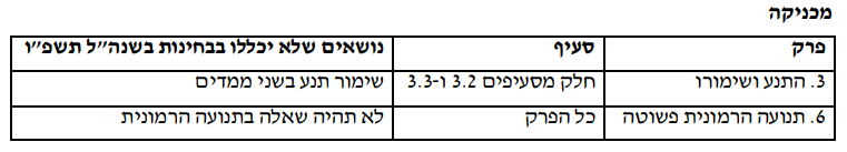 השנה שוב ירד במיקוד נושא תנועה הרמונית פשוטה וגם חלק מהנושא מתקף ותנע. יחסית לצפי של שנה ללא הפרעות – המיקוד די משמעותי.